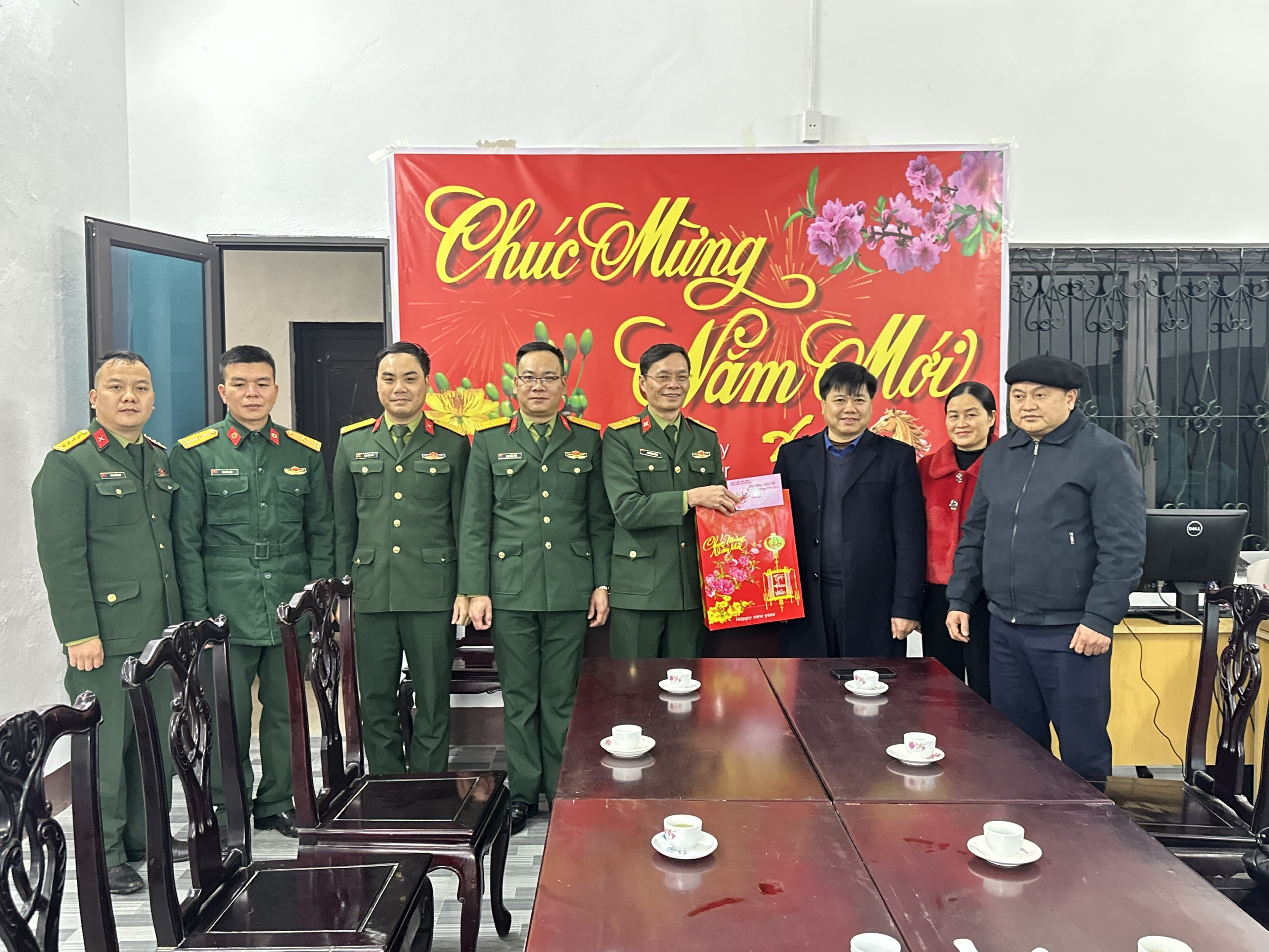 Các đồng chí Thường trực Đảng ủy xã thăm, chúc Tết cán bộ, chiến sỹ Đồn biên phòng Nghĩa Thuận