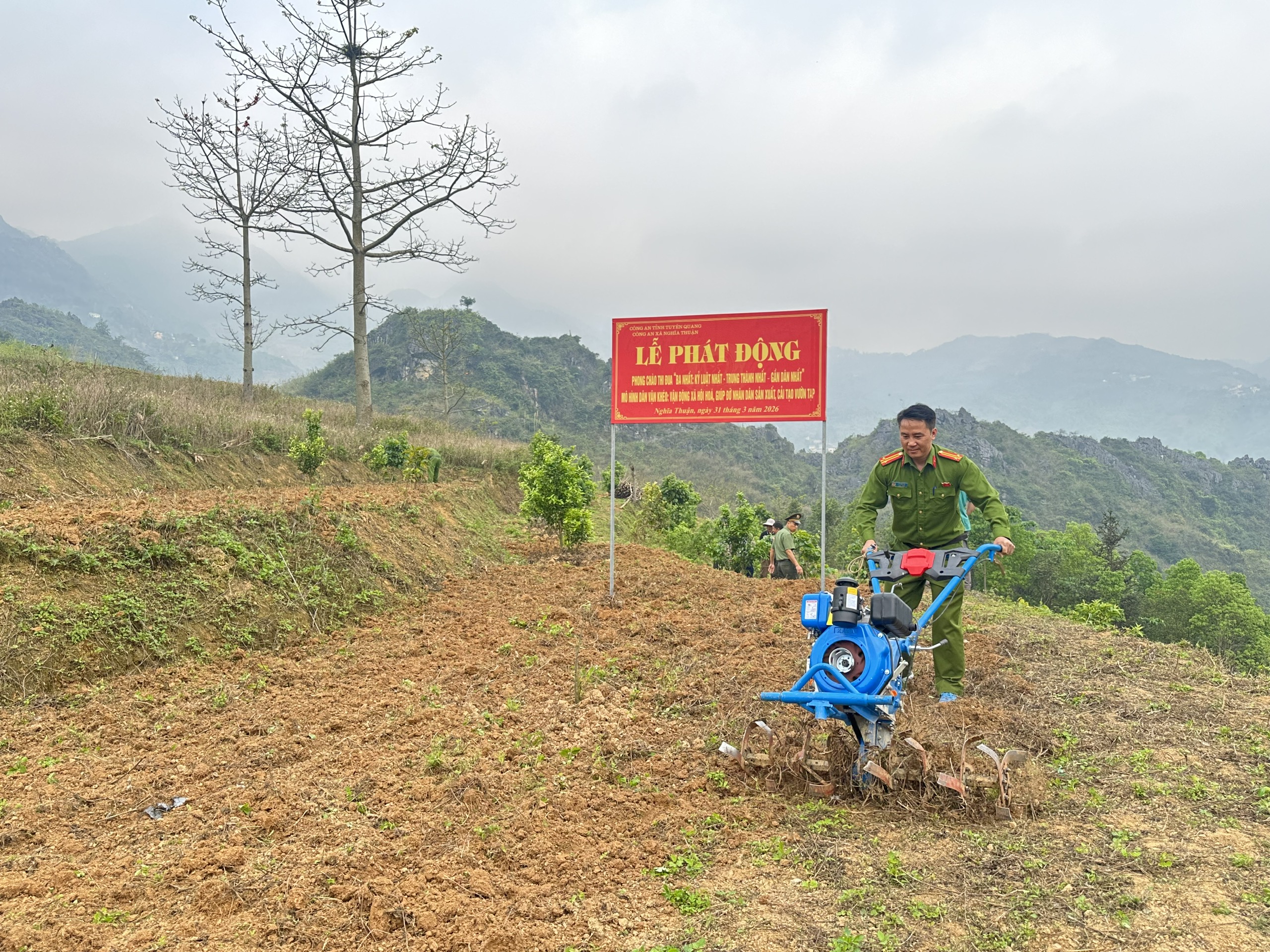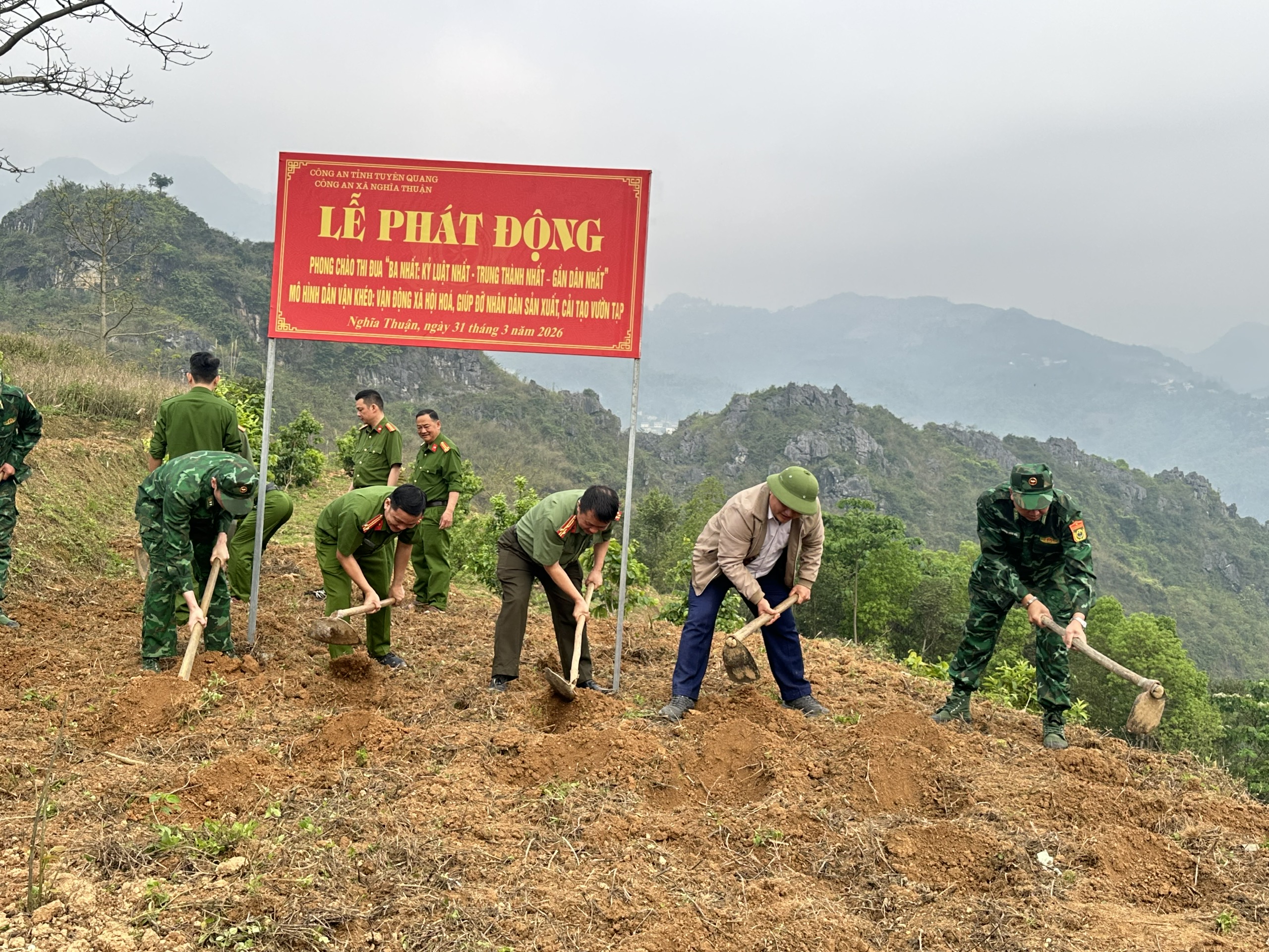 Ngày 31/3, tại thôn Ma Sào Phố, Công an xã Nghĩa Thuận phối hợp tổ chức Lễ phát động mô hình “Dân vận khéo” với nội dung vận động xã hội hóa hỗ trợ các hộ dân cải tạo vườn tạp, trồng cây khoai sọ – một loại cây trồng phù hợp với điều kiện thổ nhưỡng địa phương. Tham dự buổi lễ có đồng chí Ly Văn Minh, Phó Bí thư Thường trực Đảng ủy xã; lãnh đạo Công an xã; cán bộ, chiến sỹ lực lượng Công an; đại diện Đồn Biên phòng Nghĩa Thuận; cùng đông đảo đoàn viên thanh niên và Nhân dân trên địa bàn.