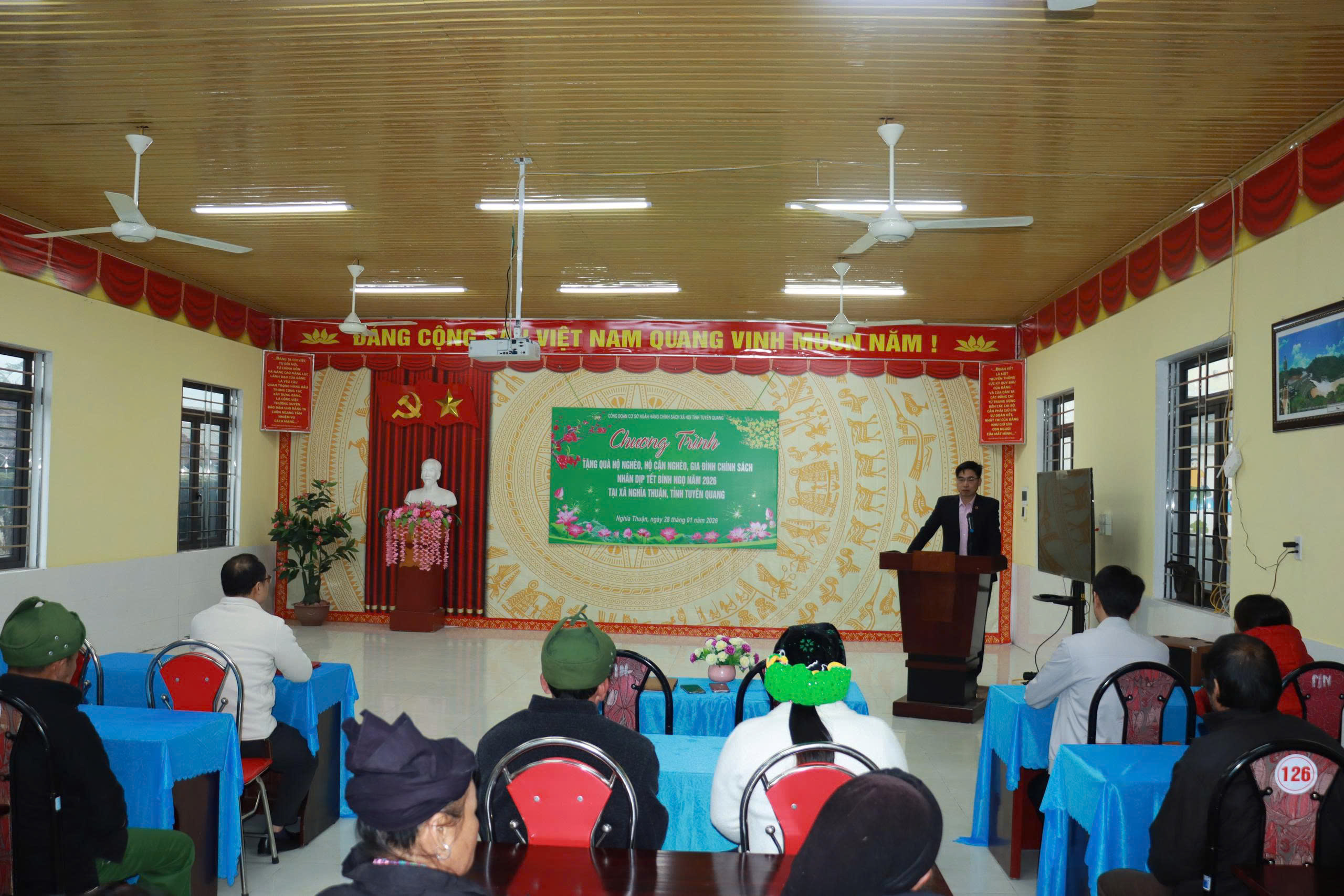 Phát biểu tại buổi trao tặng quà, lãnh đạo Ngân hàng Chính sách xã hội chi nhánh tỉnh Tuyên Quang đã động viên, sẻ chia với các gia đình có hoàn cảnh khó khăn, gia đình chính sách. Đồng thời mong muốn các gia đình tiếp tục cố gắng vươn lên phát triển kinh tế để sớm thoát nghèo bền vững. Lãnh đạo Ngân hành CSXH chi nhánh tỉnh Tuyên Quang cũng chúc các gia đình đón xuân Bính Ngọ 2026 với nhiều niềm vui, hạnh phúc, năm mới thắng lợi mới.