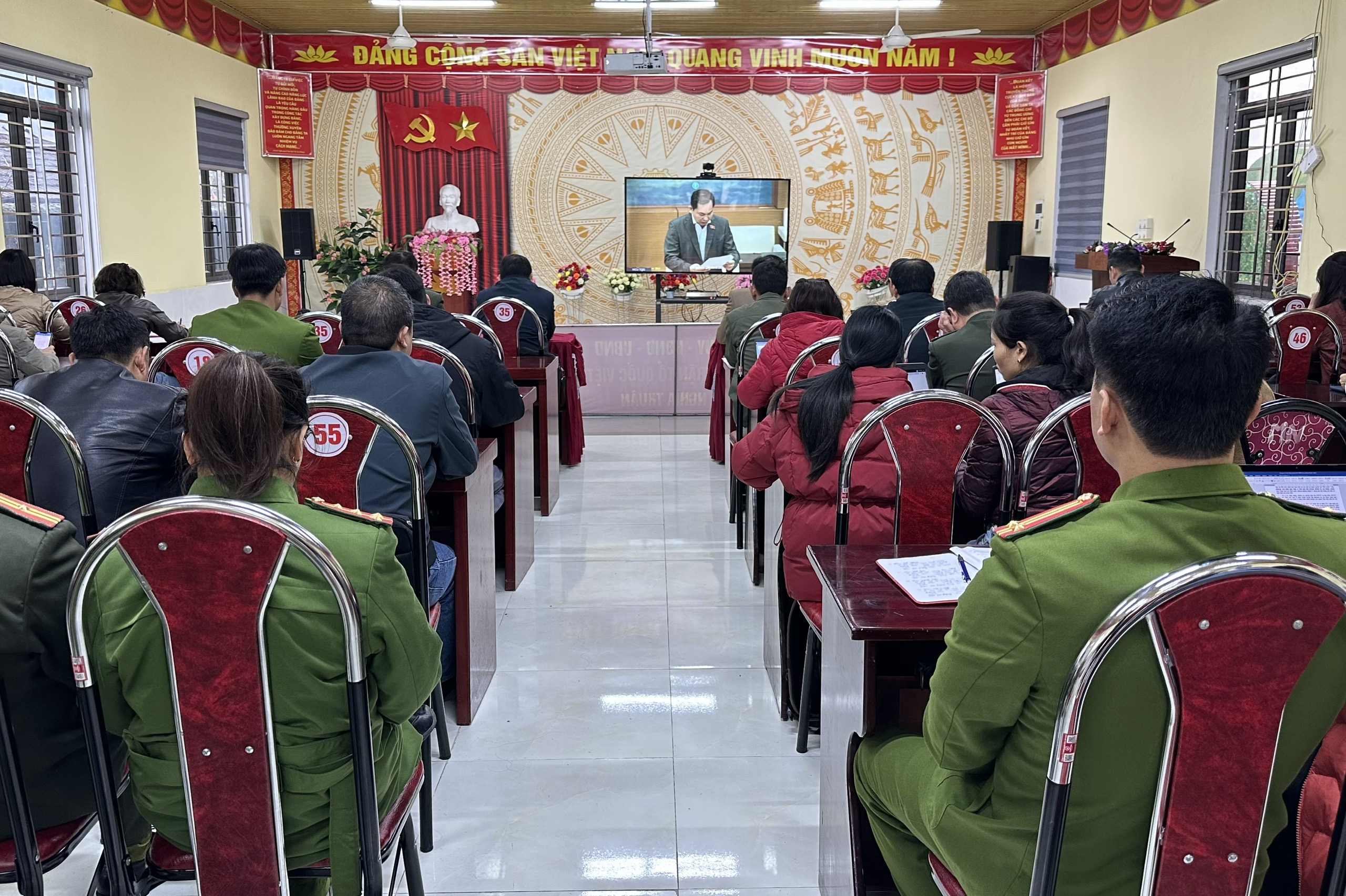 Quang cảnh tại điểm cầu xã Nghĩa Thuận.