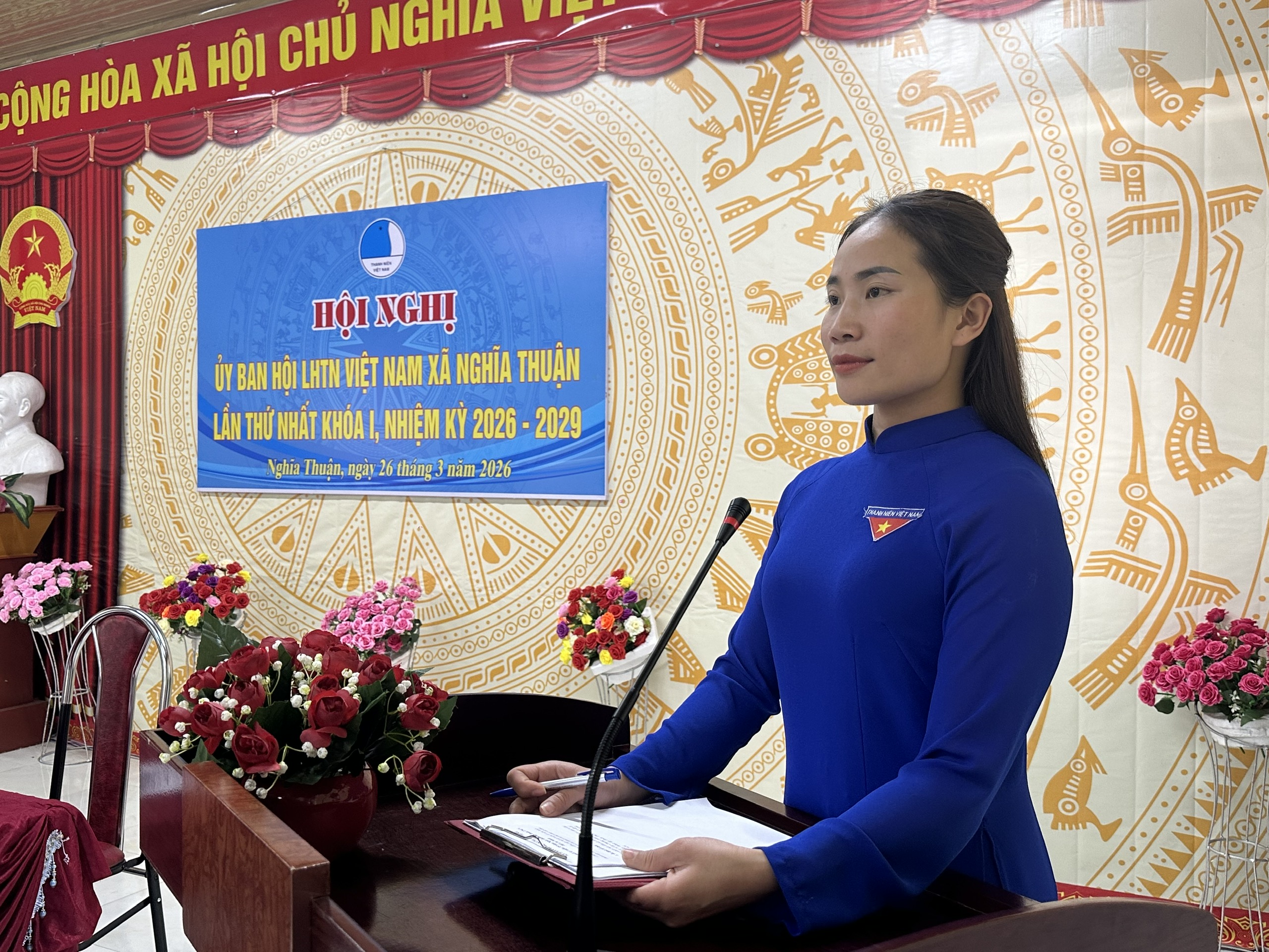 Ngay sau phiên chính thức, Hội nghị đã tiến hành phiên họp thứ nhất Uỷ ban Hội LHTN Việt Nam xã Nghĩa Thuận khoá I, nhiệm kỳ 2026 – 2029. Tại đây, các đại biểu đã hiệp thương cử Uỷ ban Hội khoá mới; hiệp thương các chức danh Chủ tịch, Phó Chủ tịch Hội; đồng thời hiệp thương cử đoàn đại biểu tham dự Hội nghị cấp trên theo đúng quy định, đảm bảo dân chủ, thống nhất và đúng điều lệ Hội. Chị Trần Thị Lan Anh được hội nghị tín nhiệm bầu tái cử Chủ tịch Hội LHTNVN xã Nghĩa Thuận là nhiệm kỳ 2026 - 2029.