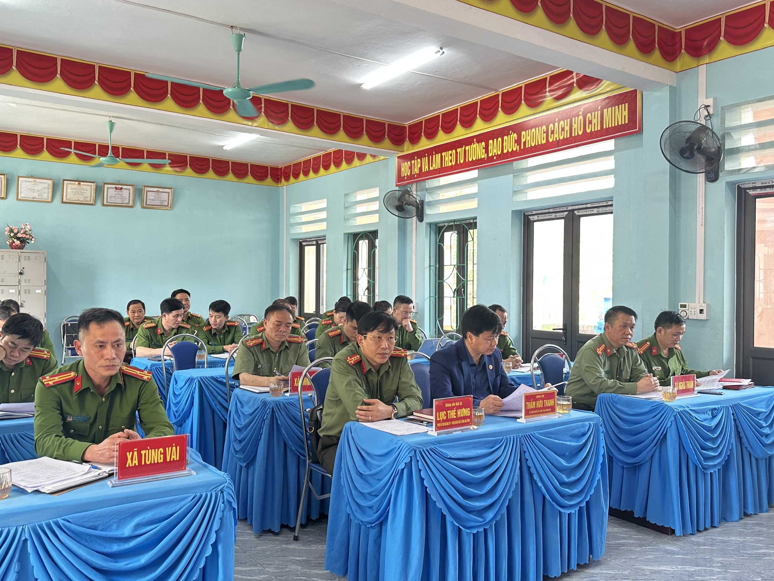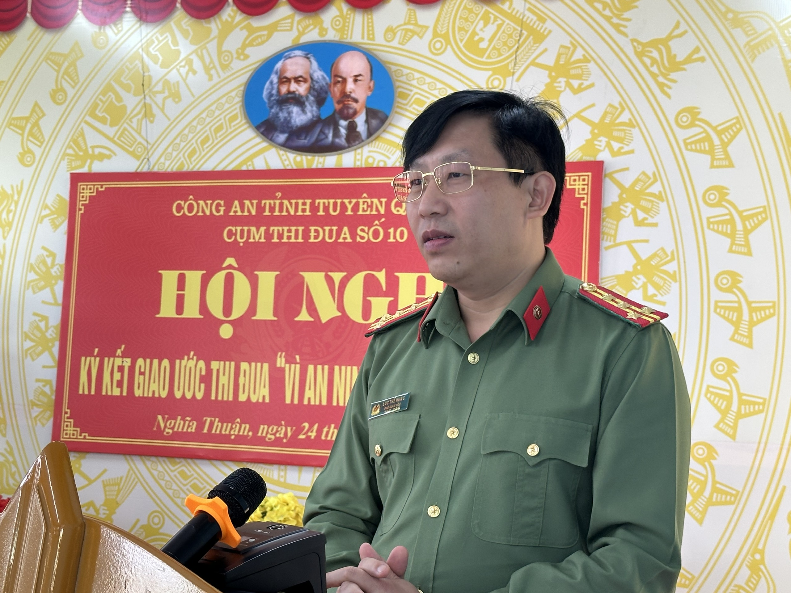 Phát biểu chỉ đạo tại hội nghị, đồng chí Đại tá Lục Thế Hưng, Phó Giám đốc Công an tỉnh Tuyên Quang và đồng chí Thẩm Hữu Thanh, Bí thư Đảng ủy, Chủ tịch HĐND xã Nghĩa Thuận ghi nhận, biểu dương tinh thần chủ động của Công an các xã trong Cụm thi đua số 10. Đồng thời đề nghị các đơn vị tiếp tục tập trung thực hiện nghiêm túc, hiệu quả 71 chỉ tiêu công tác do Giám đốc Công an tỉnh giao; tăng cường đoàn kết nội bộ, nâng cao chất lượng công tác phê bình và tự phê bình; tổ chức thực hiện tốt công tác thi đua, khen thưởng bảo đảm đúng người, đúng việc, kịp thời, khách quan. Các đồng chí lãnh đạo cũng nhấn mạnh yêu cầu mỗi cán bộ, chiến sĩ phải nêu cao tinh thần trách nhiệm, chấp hành nghiêm kỷ luật, kỷ cương; thực hiện hiệu quả phương châm “3 nhất” gồm: “Kỷ luật nhất, Trung thành nhất, Gần dân nhất” qua đó góp phần xây dựng lực lượng Công an xã thực sự trong sạch, vững mạnh, đáp ứng yêu cầu nhiệm vụ trong tình hình mới. Song song với đó, lực lượng Công an các xã tiếp tục đẩy mạnh thực hiện Đề án 06 của Chính phủ, tăng cường quản lý cư trú, ngành nghề kinh doanh có điều kiện; hướng dẫn Nhân dân sử dụng dịch vụ công trực tuyến, phấn đấu đạt tỷ lệ trên 80%. Công tác bảo đảm trật tự an toàn giao thông, phòng cháy chữa cháy và cứu nạn cứu hộ được chú trọng, hạn chế thấp nhất các vụ việc xảy ra. Phong trào toàn dân bảo vệ an ninh Tổ quốc tiếp tục được đẩy mạnh với nhiều hình thức tuyên truyền phong phú; các mô hình tự quản về an ninh, trật tự được củng cố, nhân rộng, phát huy hiệu quả.