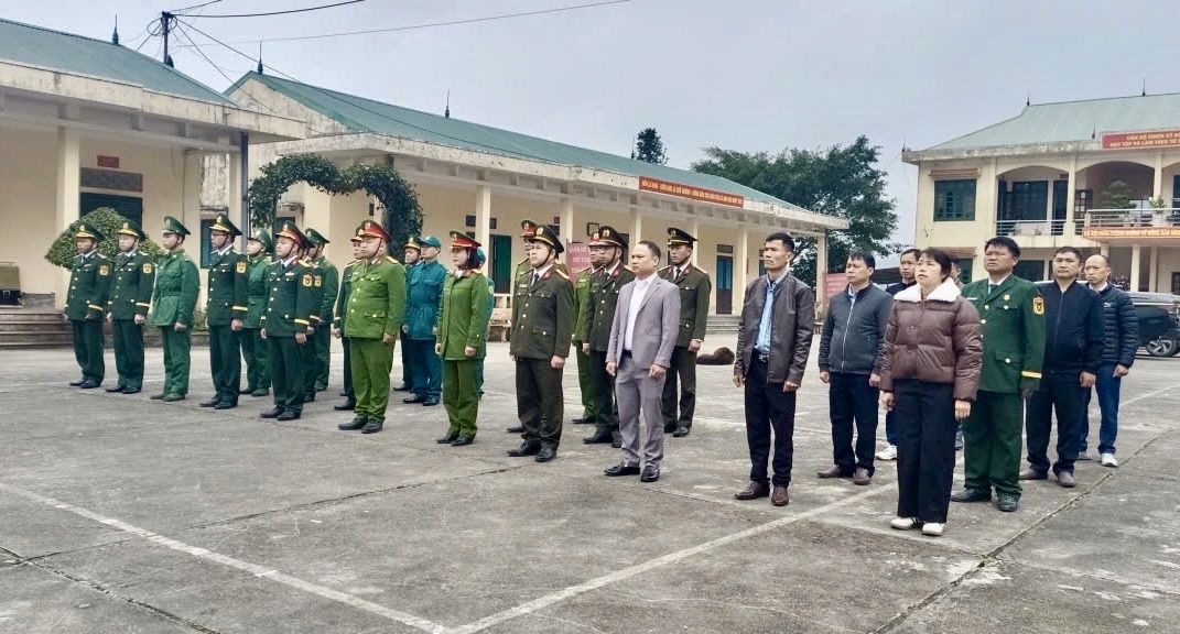 Trong không khí trang nghiêm, các đại biểu và lực lượng tham dự đã thực hiện nghi thức chào cờ, hát Quốc ca, thể hiện lòng yêu nước, niềm tự hào dân tộc và quyết tâm bảo vệ vững chắc chủ quyền, an ninh biên giới quốc gia.