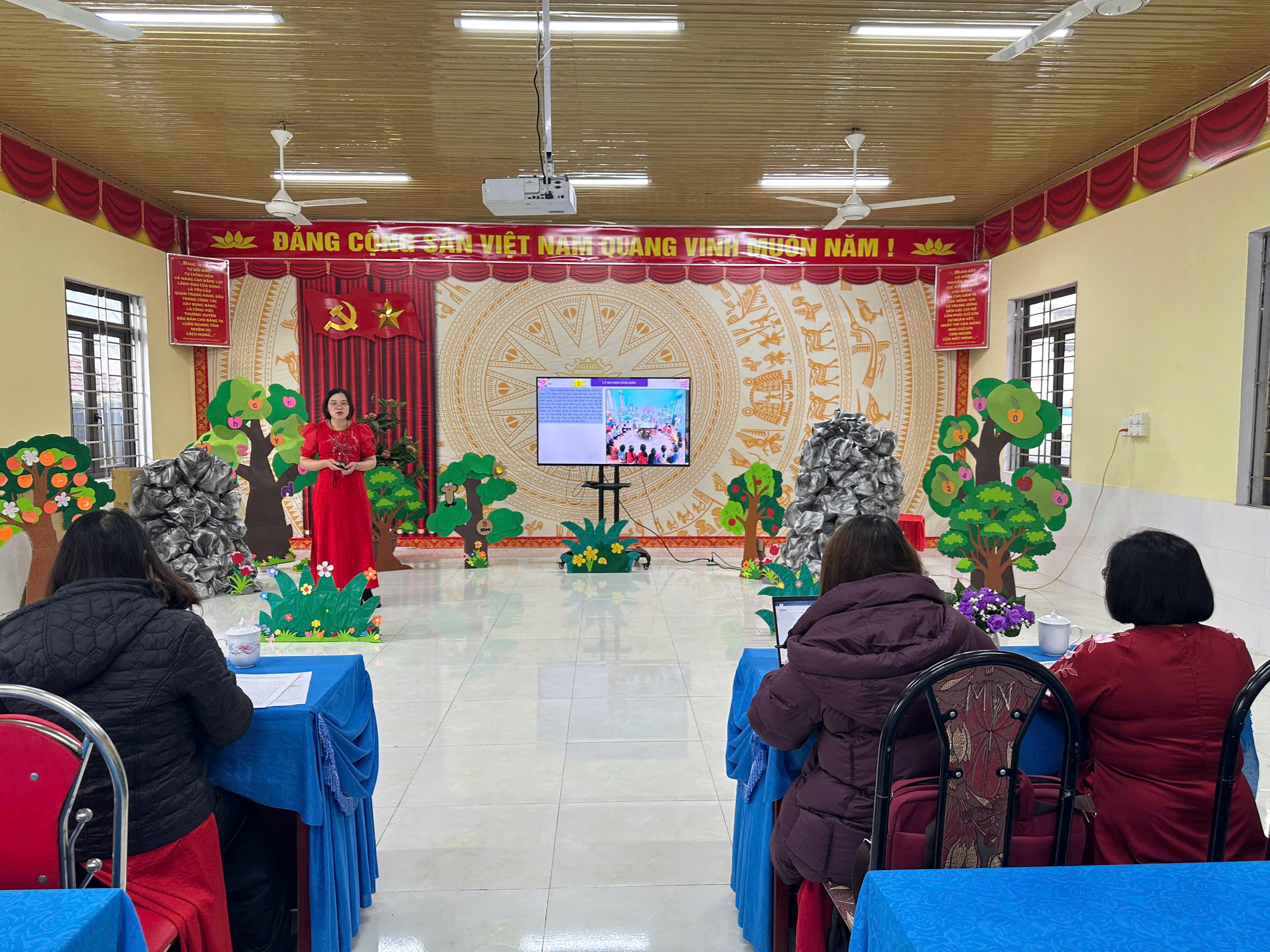Đồng chí Dương Thị Thủy – Bí thư Chi bộ, Hiệu trưởng Trường Mầm non Thanh Vân triển khai quy chế thi.