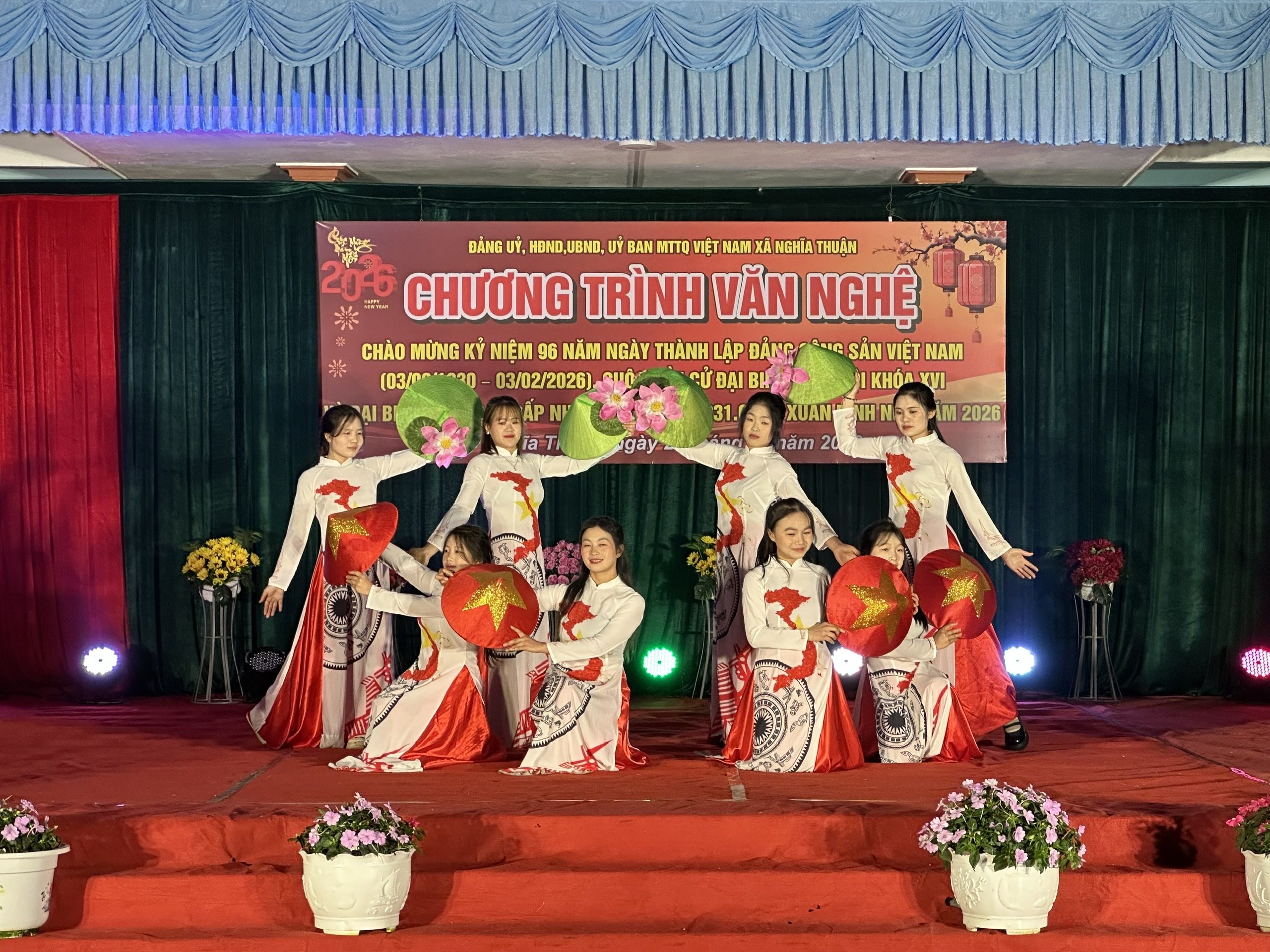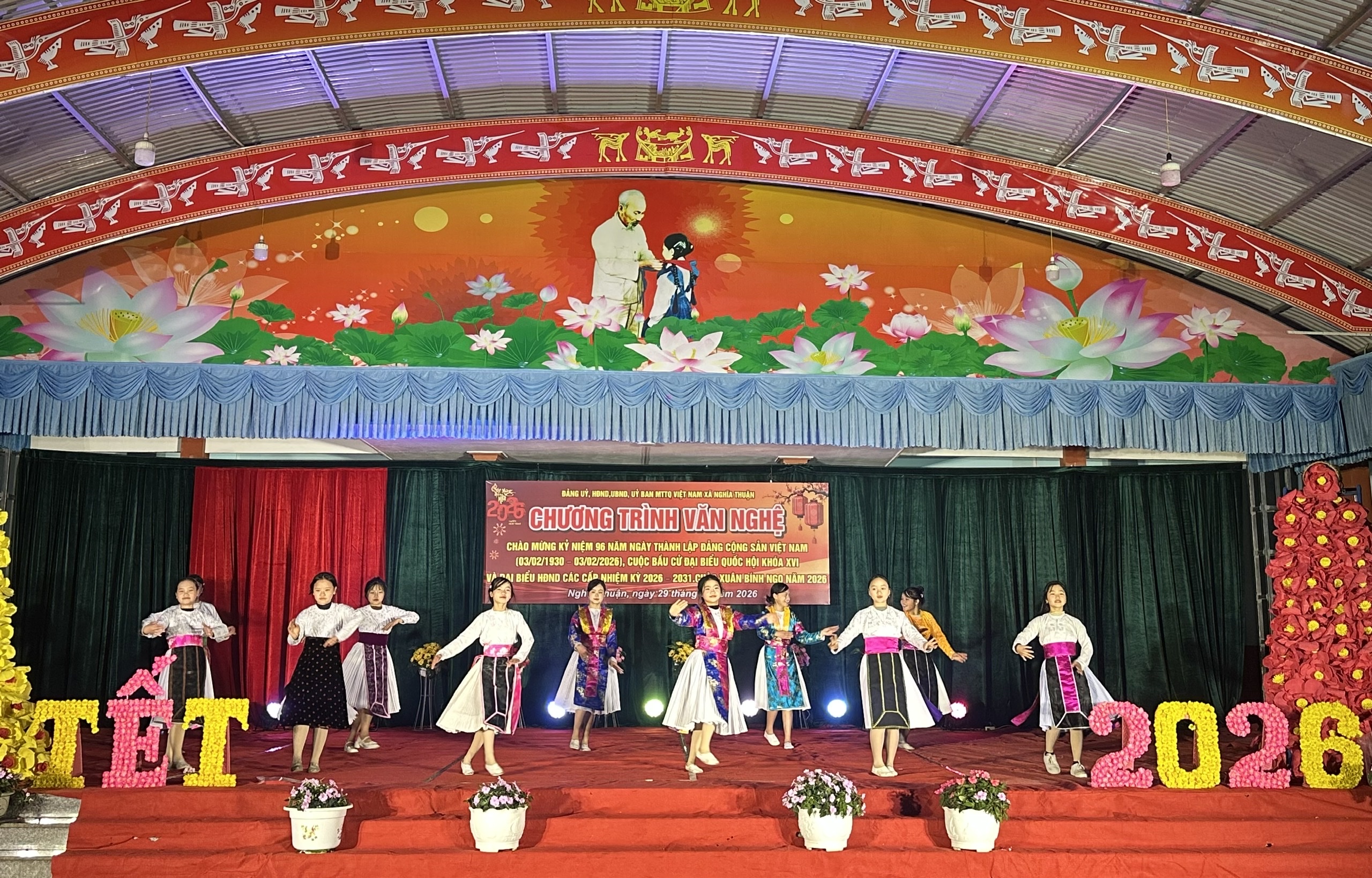 Với chủ đề “Mừng Đảng quang vinh, mừng Xuân Bính Ngọ năm 2026” chương trình văn nghệ đã mang đến nhiều tiết mục ca, múa, nhạc được dàn dựng công phu, đặc sắc. Nội dung các tiết mục tập trung ca ngợi Đảng Cộng sản Việt Nam quang vinh, Chủ tịch Hồ Chí Minh vĩ đại; truyền thống vẻ vang 96 năm xây dựng và trưởng thành của Đảng; tình yêu quê hương, đất nước; phản ánh những thành tựu nổi bật trong công cuộc đổi mới và phát triển của đất nước. Chương trình do đội ngũ giáo viên, học sinh đang học tập trên địa bàn xã và Nhân dân địa phương biểu diễn, tạo nên không khí vui tươi, phấn khởi, sôi nổi, góp phần thắt chặt tình đoàn kết trong cộng đồng dân cư, khơi dậy niềm tự hào, niềm tin của Nhân dân đối với sự lãnh đạo của Đảng và chính quyền các cấp.