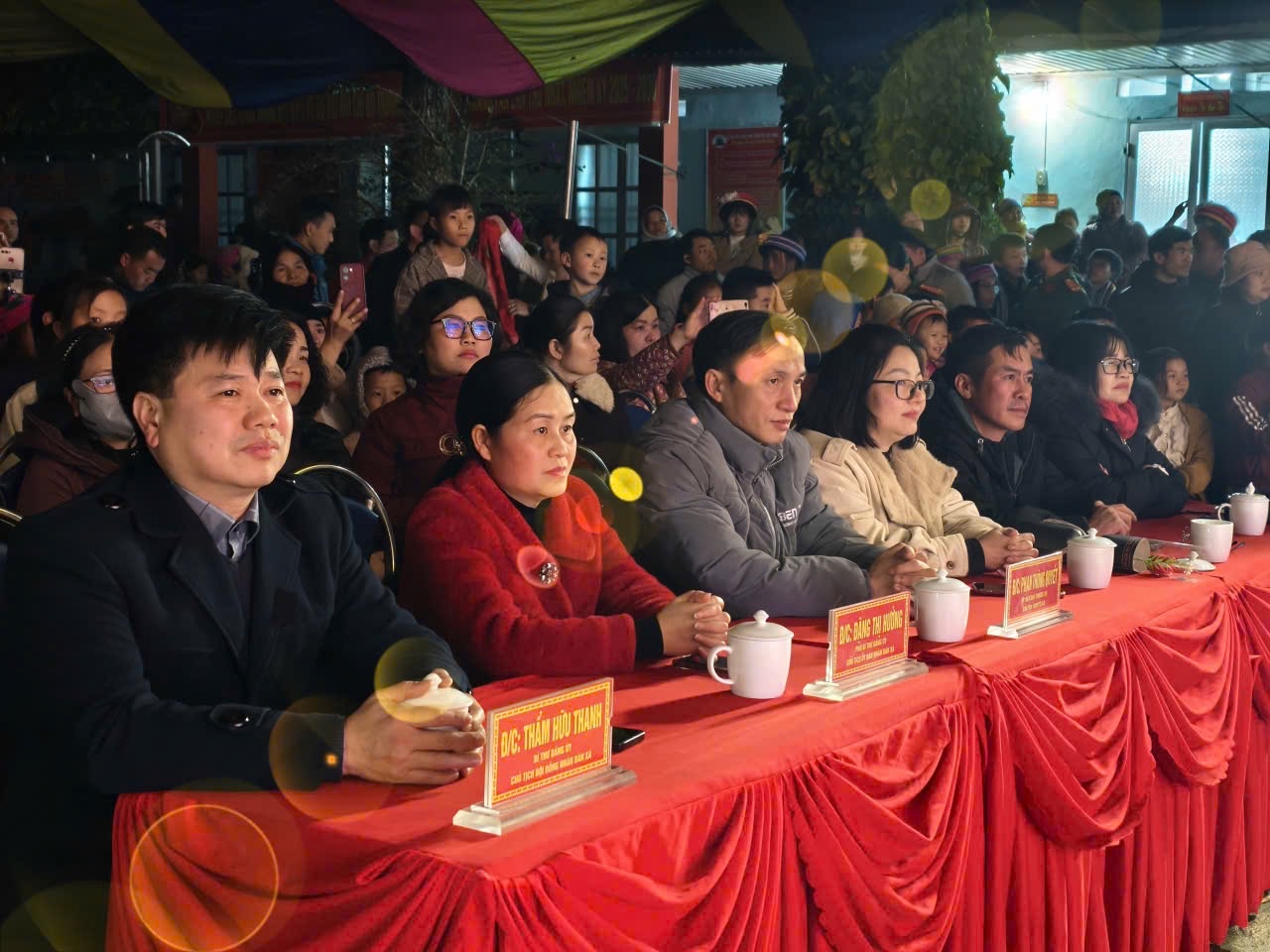 Đến dự chương trình văn nghệ có đồng chí Thẩm Hữu Thanh – Bí thư Đảng ủy, Chủ tịch HĐND xã; đồng chí Ly Văn Minh – Phó Bí thư Thường trực Đảng ủy; đồng chí Đặng Thị Hưởng – Phó Bí thư Đảng ủy, Chủ tịch UBND xã; cùng các đồng chí trong Thường trực HĐND, UBND, Ủy ban MTTQ Việt Nam xã; đại diện các ban, ngành, đoàn thể; cán bộ, công chức, các tổ chức chính trị – xã hội; ban chi ủy, ban quản lý các thôn; cán bộ, giáo viên các đơn vị trường học trên địa bàn xã và đông đảo bà con Nhân dân đến xem và cổ vũ.