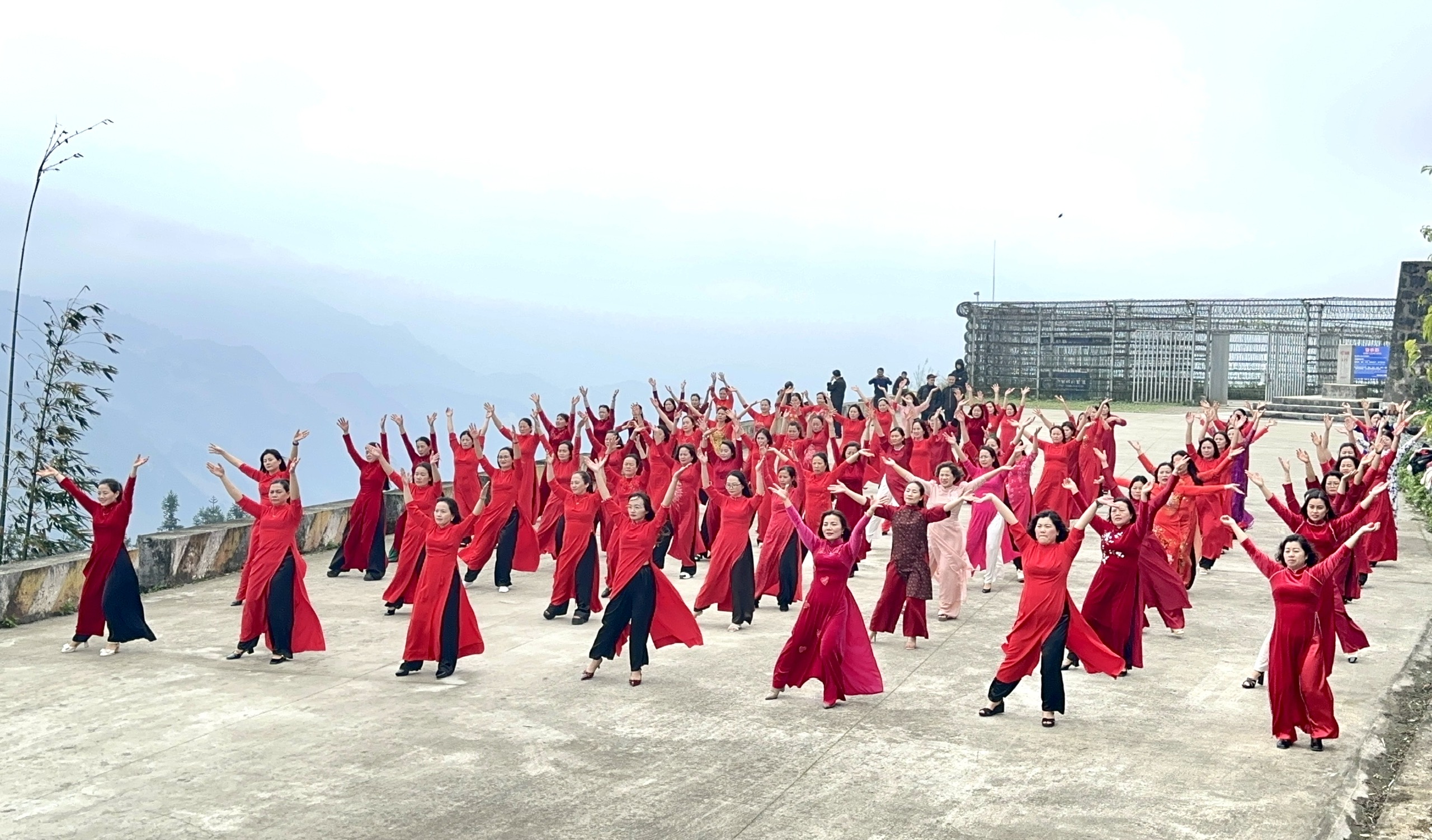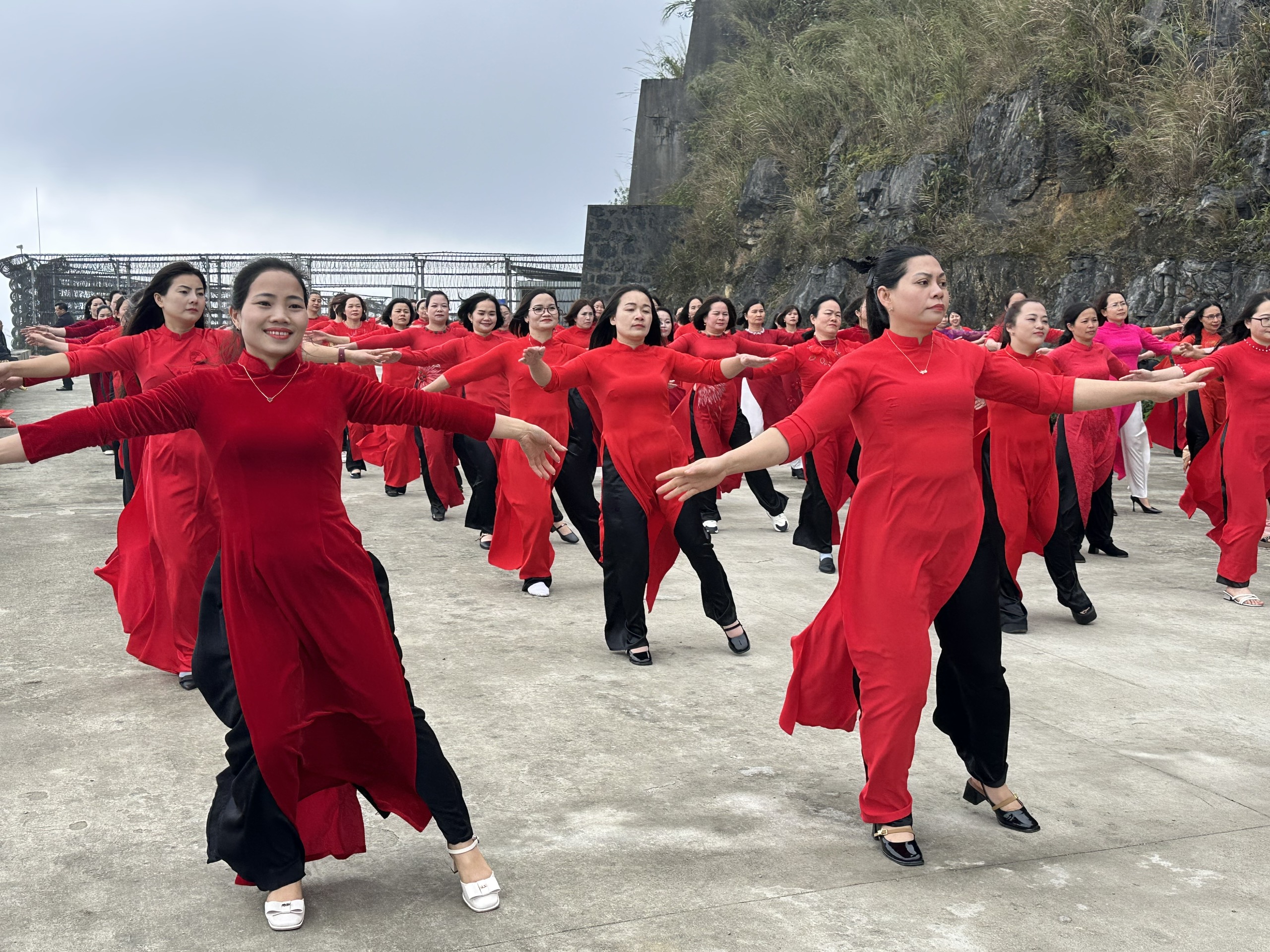 Chương trình thu hút 80 cán bộ, công chức, viên chức và giáo viên các đơn vị trường học trên địa bàn xã tham gia. Trong tà áo dài truyền thống rực rỡ sắc màu, các chị em đã cùng nhau trình diễn tiết mục dân vũ sôi động, thể hiện tinh thần đoàn kết, niềm vui và sự tự tin của phụ nữ trong đời sống hiện đại. Dưới tiết trời gió lạnh nơi biên cương, chị em phụ nữ vẫn nhiệt tình tham gia đồng diễn dân vũ trong những tà áo dài rực rỡ sắc màu, góp phần làm bừng sáng không gian nơi mốc biên giới 325. Hoạt động không chỉ góp phần tôn vinh vẻ đẹp của tà áo dài Việt Nam mà còn tạo không khí vui tươi, phấn khởi chào mừng Ngày Quốc tế Phụ nữ 8/3.