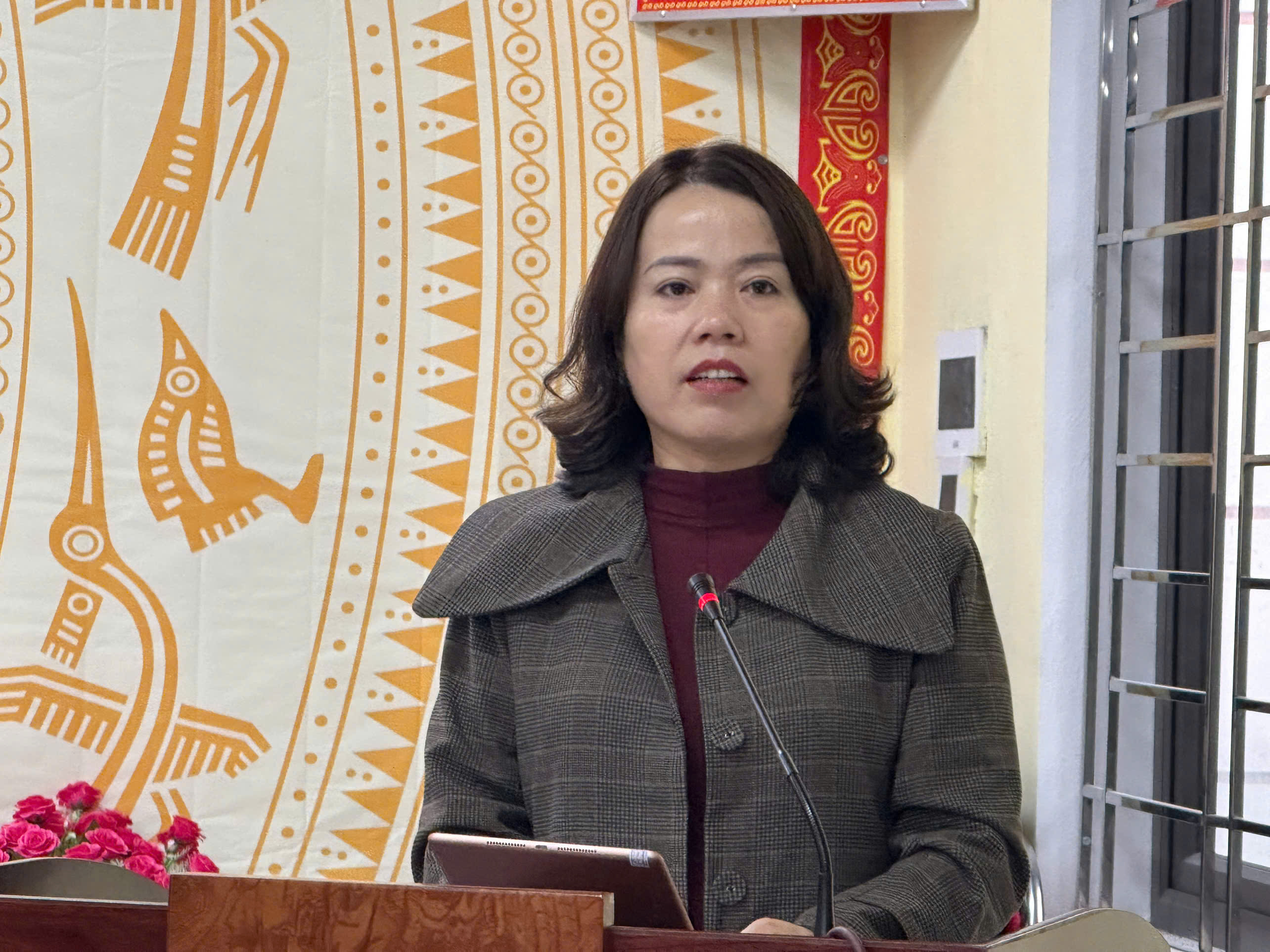Đồng chí Lý Thị Lan, Trưởng đoàn đại biểu Quốc hội khóa XV tỉnh phát biểu tại buổi tiếp xúc.