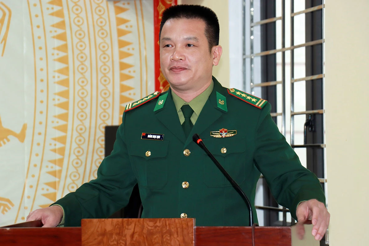 Ứng cử viên đại biểu Quốc hội Hoàng Ngọc Định, Phó Chỉ huy trưởng Bộ Chỉ huy Quân sự tỉnh kiêm Chỉ huy trưởng Ban Chỉ huy Bộ đội Biên phòng tỉnh trình bày chương trình hành động cá nhân.