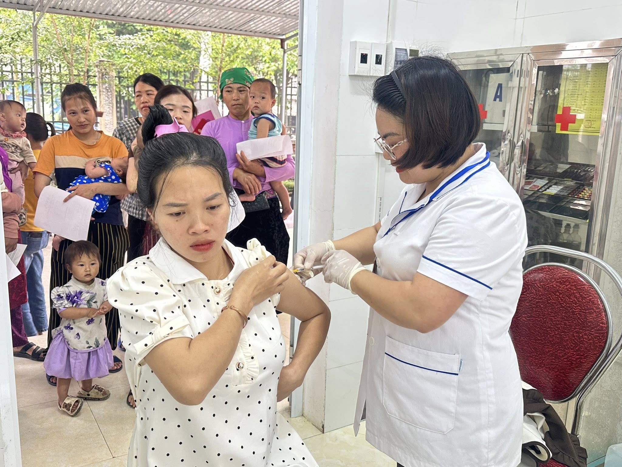 Đối tượng được tiêm gồm trẻ dưới 1 tuổi, trẻ 18 tháng tuổi với các loại vắc xin như DPT, Sởi – Rubella và tiêm phòng uốn ván cho phụ nữ mang thai. Tại buổi tiêm, đội ngũ cán bộ y tế thực hiện nghiêm túc quy trình chuyên môn, từ khám sàng lọc, tư vấn trước tiêm đến theo dõi sau tiêm. Công tác tổ chức được triển khai chặt chẽ, khoa học, bảo đảm an toàn, không để xảy ra sai sót.