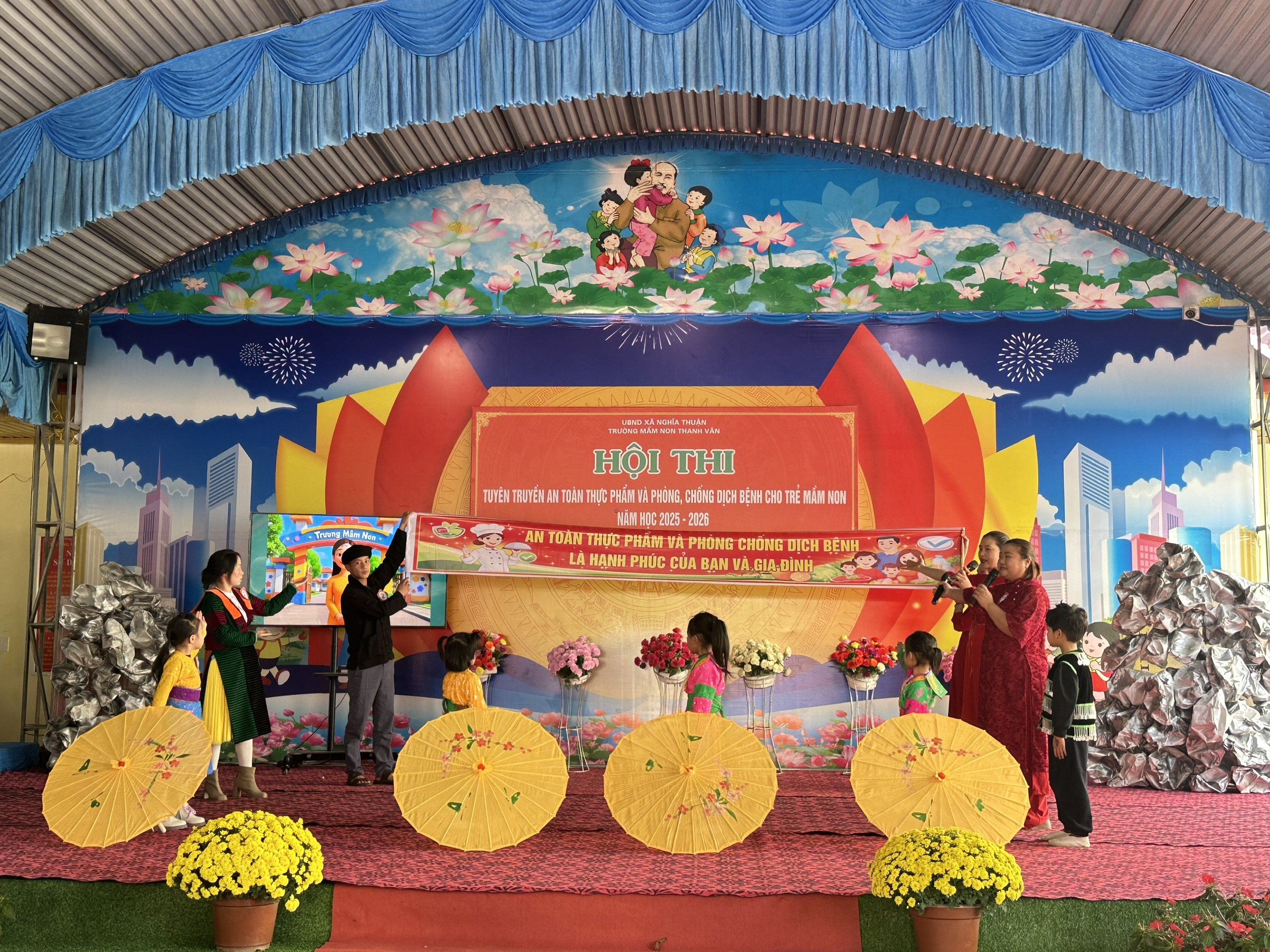 Tham gia hội thi có 05 đội thi, gồm: đội Mã Hồng – Lùng Cáng; Thanh Long – Ma Lùng; Mỏ Sài; Lùng Cúng; Làng Tấn I – Làng Tấn II. Các đội lần lượt trải qua 03 phần thi: phần thi chào hỏi; phần thi kiến thức với chủ đề “Bé khỏe – Bé an toàn”; và phần thi tiểu phẩm tuyên truyền “Chung tay bảo vệ sức khỏe trẻ mầm non”.Với sự chuẩn bị chu đáo, kỹ lưỡng từ nội dung kịch bản đến hình thức thể hiện, các đội thi đã mang đến nhiều phần trình diễn sinh động, hấp dẫn, lồng ghép hiệu quả các kiến thức về an toàn thực phẩm, vệ sinh cá nhân và phòng, chống dịch bệnh thường gặp ở trẻ mầm non.