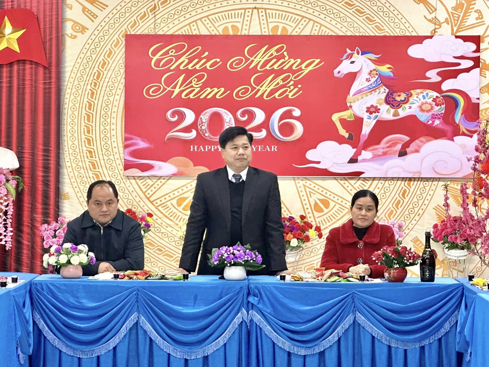 Đồng chí nhấn mạnh, năm 2026 là năm có nhiều nhiệm vụ quan trọng, đề nghị toàn thể cán bộ, công chức, viên chức tiếp tục phát huy tinh thần đoàn kết, trách nhiệm, nêu cao vai trò gương mẫu của người đứng đầu. Trọng tâm thời gian tới là tập trung chuẩn bị các điều kiện cần thiết cho việc xây dựng trường nội trú liên cấp trên địa bàn; làm tốt công tác tuyên truyền, tạo sự đồng thuận trong nhân dân; đồng thời triển khai nghiêm túc, đúng quy định công tác bầu cử, bảo đảm dân chủ, công khai, đúng luật và an toàn. Bên cạnh đó, các cơ quan, đơn vị cần chủ động thực hiện hiệu quả các nhiệm vụ phát triển kinh tế – xã hội, giữ vững quốc phòng – an ninh, quyết tâm tạo chuyển biến tích cực ngay từ những tháng đầu năm.