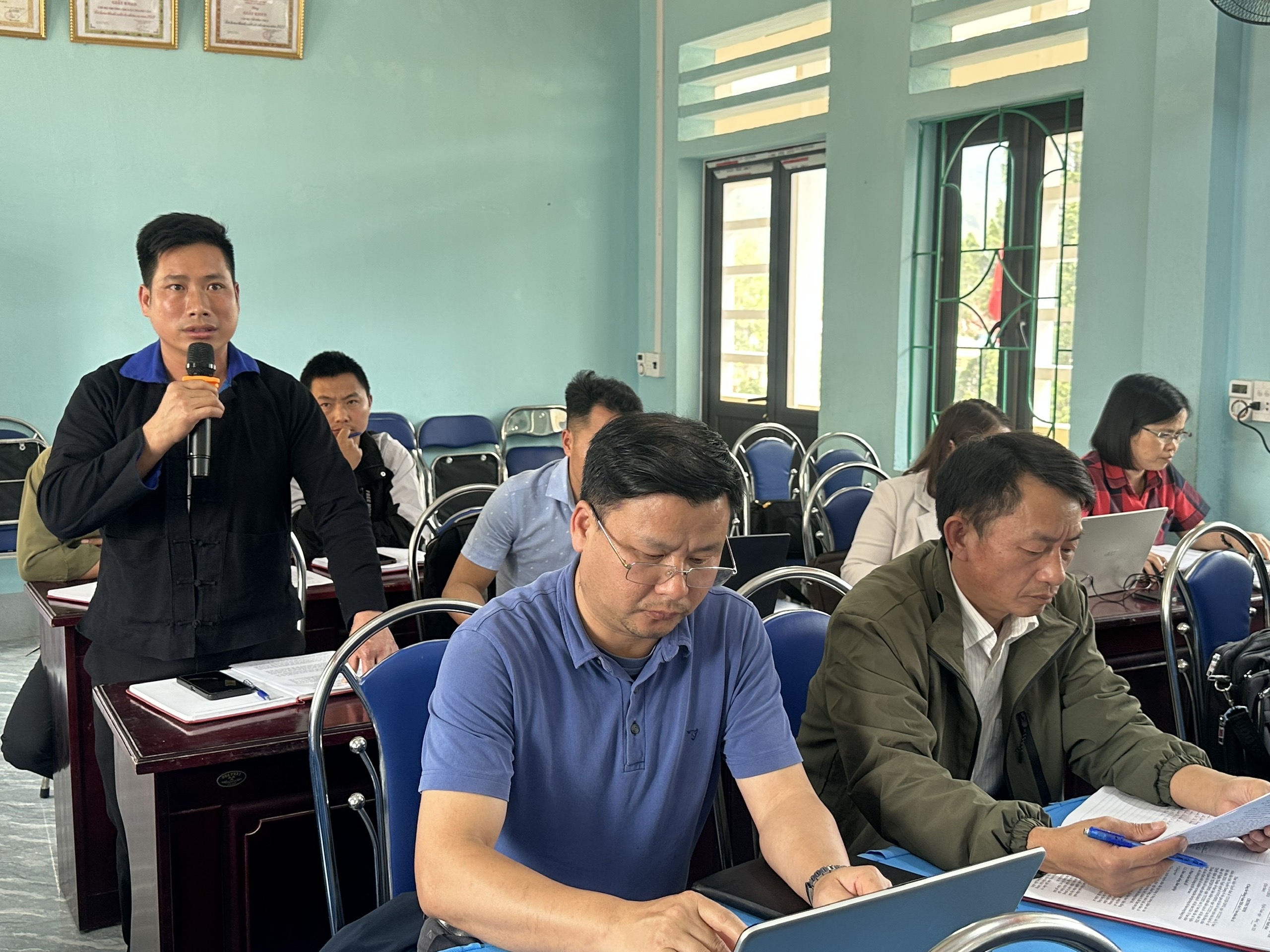 Đại diện các thôn phát biểu thảo luận tại phiên họp.