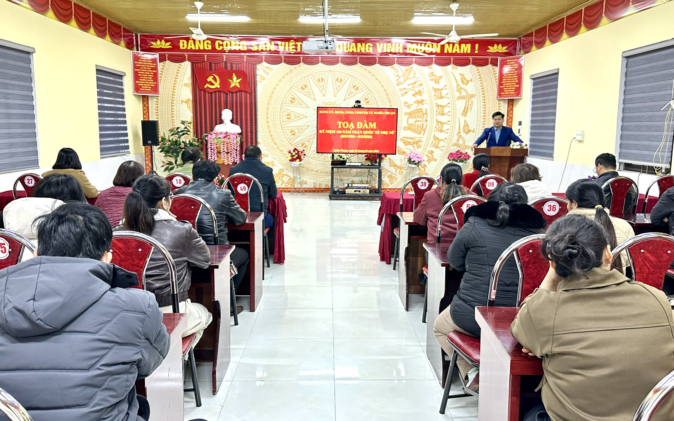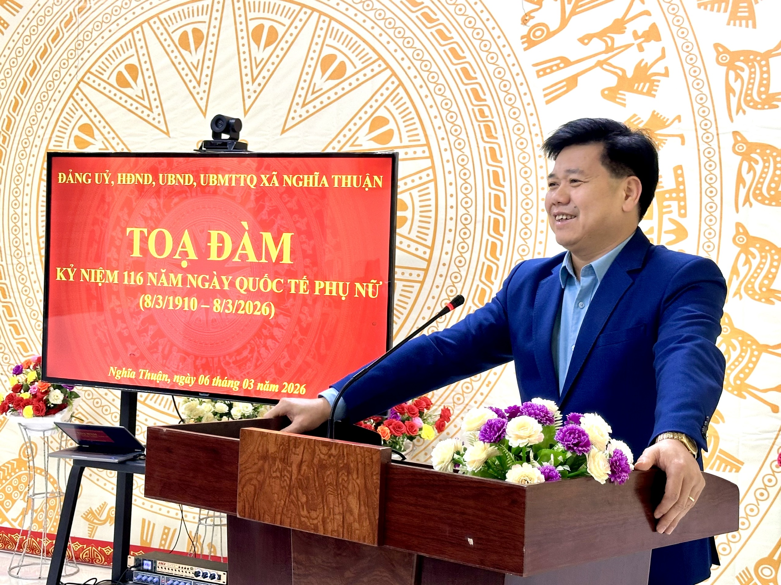 Phát biểu tại buổi toạ đàm đồng chí Bí thư Đảng uỷ xã Thẩm Hữu Thanh đã gửi những lời chúc tốt đẹp tới toàn thể nữ cán bộ, công chức, viên chức và người lao động nhân dịp Ngày Quốc tế Phụ nữ 8/3. Đồng chí khẳng định, dù trong bất kỳ thời kỳ lịch sử nào, phụ nữ Việt Nam luôn phát huy những phẩm chất tốt đẹp như nhân hậu, đảm đang, trách nhiệm và giàu đức hy sinh. Phát huy truyền thống đó, đội ngũ nữ cán bộ, công chức, viên chức và người lao động xã Nghĩa Thuận luôn nỗ lực trong công tác, hoàn thành tốt nhiệm vụ được giao. Đồng chí mong muốn trong thời gian tới, các nữ cán bộ, công chức, viên chức và người lao động trong xã tiếp tục phát huy tinh thần đoàn kết, trách nhiệm, tích cực học tập, nâng cao trình độ chuyên môn, nghiệp vụ, góp phần xây dựng địa phương ngày càng phát triển. Đồng thời tích cực tuyên truyền, vận động hội viên và nhân dân tham gia tốt cuộc bầu cử đại biểu Quốc hội khóa XVI và đại biểu HĐND các cấp nhiệm kỳ 2026–2031.